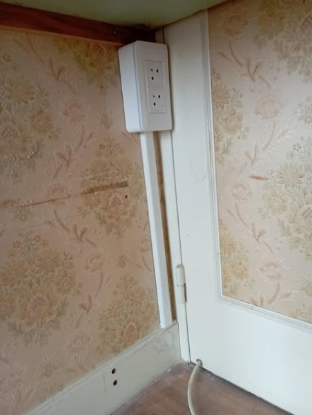 Les travaux ont débuté par la mise à jour de l'entrée, où il a été nécessaire de déplacer l'interrupteur de quelques centimètres à la suite du remplacement de la porte. Dans la cuisine, une prise de type 'Mosaic' de chez Legrand a remplacé une prise défaillante, accompagnée d'une plaque de finition pour un interrupteur double.