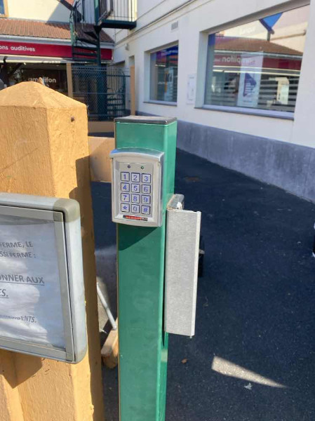 Pour assurer une connexion optimale, nous avons également remplacé la liaison électrique entre la gâche et l'interphone en utilisant les fourreaux existants. Enfin, un clavier codé SEWOSY a été mis en place à l'extérieur, au niveau du poteau, pour commander uniquement la gâche électrique.