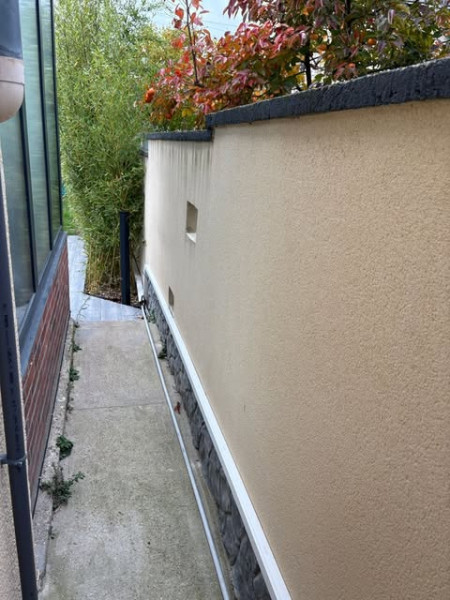 Le câble a été installé en apparent sous tube et en gaine dans le garage, puis dans une goulotte existante entre le garage et la terrasse. Enfin, une nouvelle goulotte a remplacé l'ancien tube IRL.